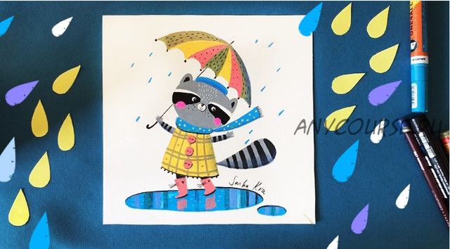 [Lil School] Как нарисовать енота под зонтом (Саша Крю)