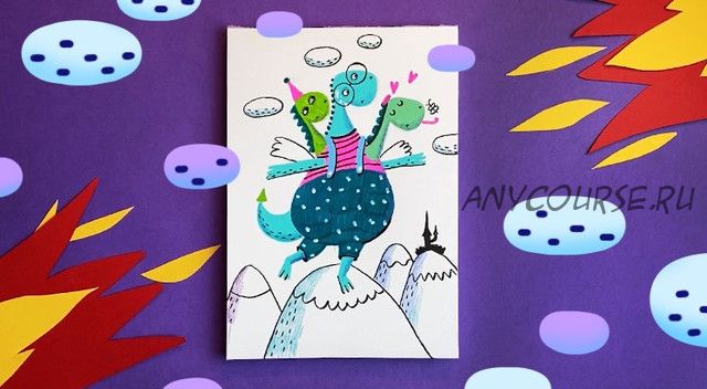 [Lil School] Как нарисовать динозавра в технике коллаж (Лариса Лебедева)