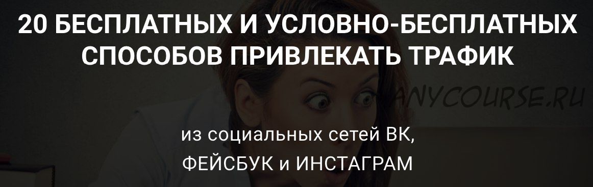 ? Когда только начинаешь первые шаги... Когда только начинаешь первые шаги в заработке через интернет, не важно это инфобизнес, партнерские программы, продажи физических товаров, продажа ваших услуг и так далее, очень хочется стартовать без вложений. Очень хочется набрать первых подписчиков в базу, группу вашей соц. сети бесплатно. А, потом уже, заработав первые деньги, начать их вкладывать в рекламу и реинвестировать. Но, вот как это сделать — почти никто не знает. Вы тратите время на поиски таких способов, что-то пытаетесь сделать, а результат «нулевой». Я решил рассказать вам 20 рабочих способов, как привлекать бесплатный или условно-бесплатный трафик из социальных сетей ВК, Фейсбук, Инстаграм на ваши ресурсы. Прежде, чем мы продолжим — давайте поясню слово условно-бесплатный трафик. Условно-бесплатный трафик — это когда вы, платите 1 раз за какую-то платную программу (допустим стоимостью 1000 рублей) и, с помощью этой программы, привлекаете бесплатный трафик. Я приготовил для вас целых 20 способов привлечения такого трафика. Все способы находится на специальной странице, ссылку на которую вы получите после регистрации на 20-дневный марафон «20 бесплатных и условно-бесплатных способа привлекать трафик из социальных сетей ВК, Фейсбук и инстаграм»