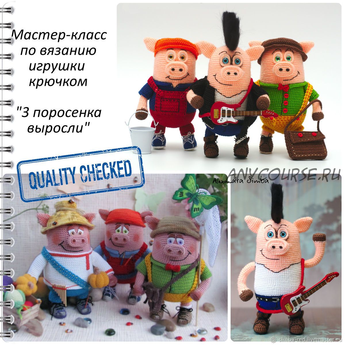 Мастер-класс включает в себя описание вязания трех выросших поросят: