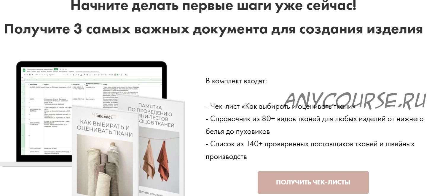Вы получите список надежных поставщиков тканей и швейных производств, с помощью которых вы сможете быстрее и качественнее отшить коллекцию