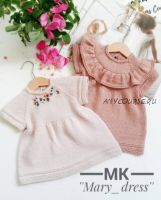 ? Платье 'Mary Dress'- это очаровательное платьице свободного фасона для девочек, бесшовное, связанное регланом сверху. Особое внимание уделено таким понятиям как росток, реглан и подрезы. Если вы хотите побаловать своих модниц красивым платьем, тогда это пособие точно для вас! На свой выбор вы будете украшать платье вышивкой или воланом по кокетке ( в описании даны оба варианта).