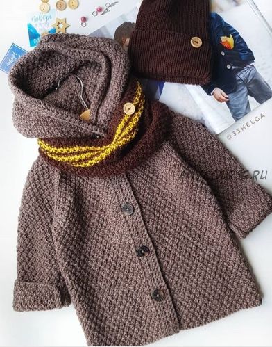 ? 'Жемчужное пальто '- это универсальный детский кардиган с капюшоном ( или без), связанный регланом сверху. Пальто связано жемчужной вязкой без узора. Возможно дополнить пальто любым узором.