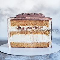 Карамельный бисквит, воздушный мусс на молочном/белом шоколаде, арахисовый крем, карамелизированный бекон с дробленным фундуком.