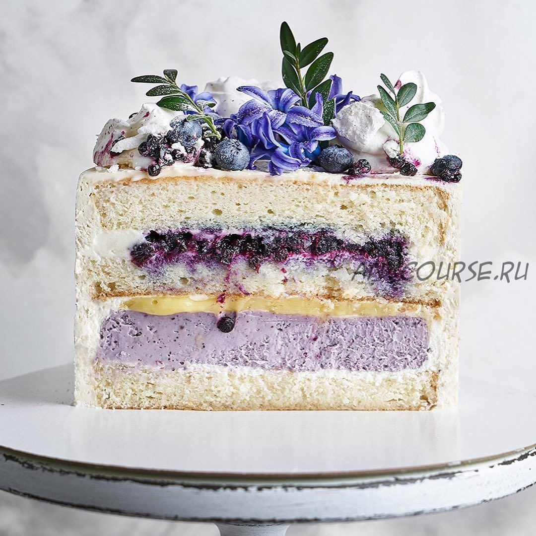 Лимонный бисквит, черничное конфи, черничный мусс, лимонный курд, сливочный кремчиз.