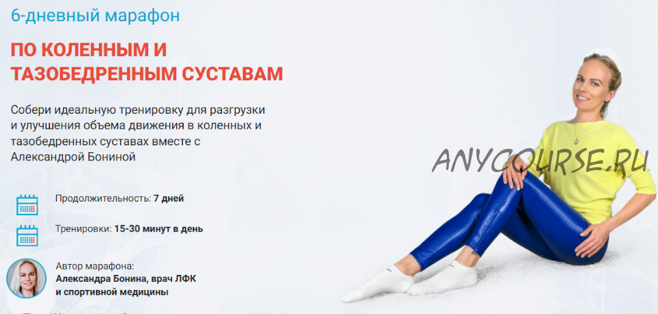 6-дневный марафон по коленным и тазобедренным суставам. Тариф Самостоятельно (Александра Бонина)