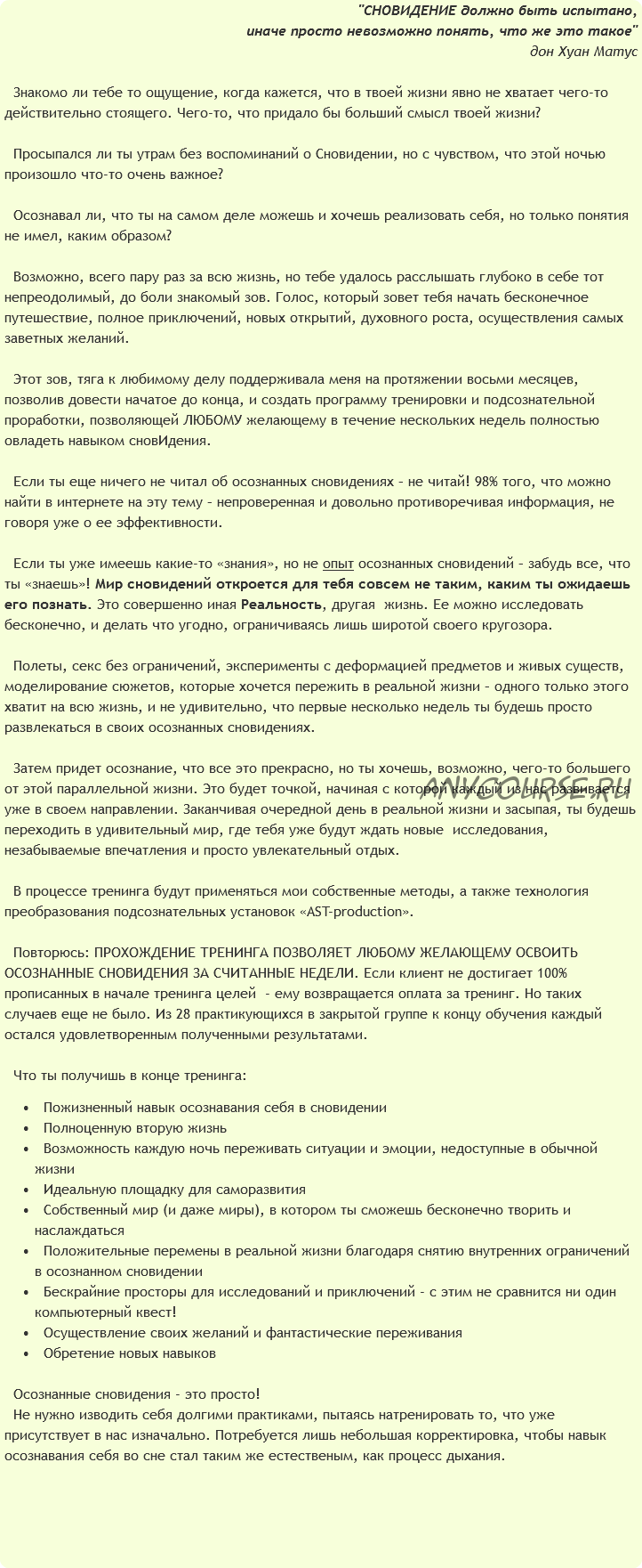 [AST-production] Осознанные сновидения (Евгений Гурьянов)