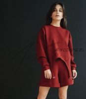 ? Джемпер прямого силуэта с подвязками из джерси. Плечо спущено, рукав рубашечный на манжете. Горловина круглая с отделкой притачной обтачкой. На спинке расположена полукруглая отрезная кокетка. По низу джемпера – декоративные подвязки с крючками.