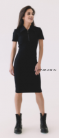 ? Облегающее платье из джерси, слегка зауженное к низу. Рукав короткий, втачной. Воротник отложной, спереди расположена застежка-молния.