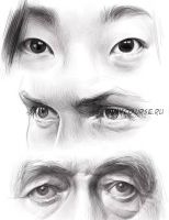 Теоретическую часть начинается с разбора анатомического строения глаз, с пропорций и возрастных анатомических изменений глазниц и размера глаз.