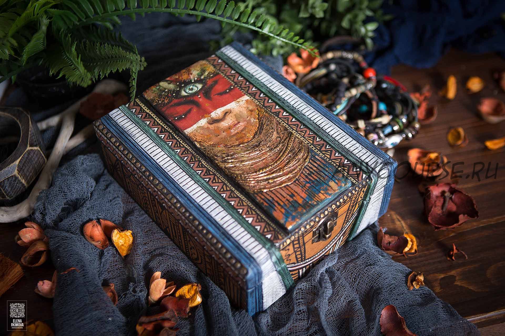 На видео мастер-классе «Ашанти» мы с вами создадим потрясающую шкатулку, в которой сочетается магия золотых переливов и строгость орнаментов. Необычная композиция, яркий колорит, объемные детали, которые не нарушают функциональность – всё это важные нюансы, которые сделают вашу работу сложной и притягательной.