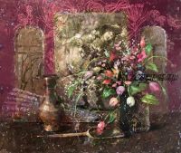 Мы напишем яркий изящный натюрморт с незримым присутствием женского образа «театральной богемы». Букет прелестных весенних цветов в окружении флаконов духов и шляпных коробок украшает резное окно будуара. Фотография балерины смущает своей откровенностью.