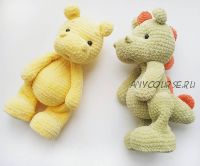 Мастер-класс (2 в 1): 'Бегемоша и динозаврик' В формате pdf Рост 22 см 25 стр.с пошаговым описанием и фотографиями Все необходимые материалы указаны Средний уровень вязания.