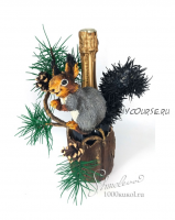 Славная реалистичная белочка, похожая на сказочный персонаж, может украсить подставку для новогоднего шампанского или вазочку для конфет.