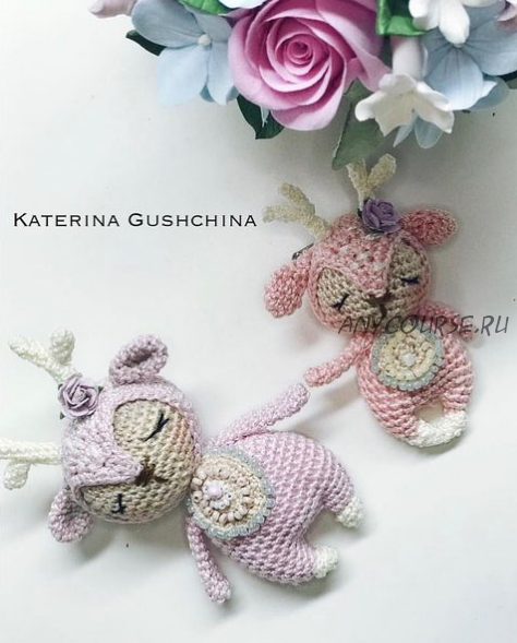 Вы получите: пошаговый мастер класс в фотографиях и описание - по вязанию крючком брошки 'Олененок'