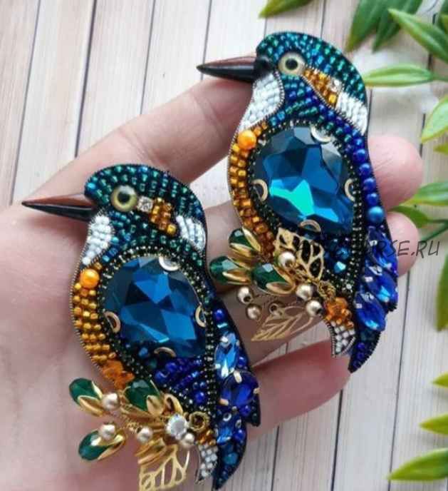 Новый видео мастер класс. Вышиваем прекрасную брошь Зимородок, плетём веточку из проволоки.