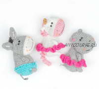 В мк описание брошки единорожки, бегемот и ослик та же схема, а уши и штаны я схематично описала.