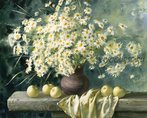 Букет из множества цветов подобен большой симфонии, сложенной из отдельных звуков. Как возможно в музыке услышать отдельные звуки и записать их нотами? Схожий вопрос применим к живописи, и ответ кроется в постижении изобразительной грамоты. На новом занятии вы будете изучать её на примере букета ромашек.