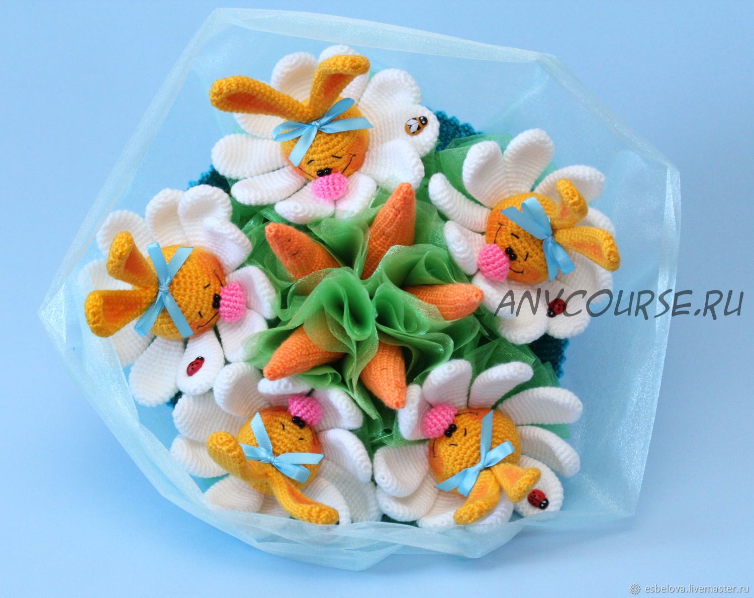 Мастер-класс по вязанию крючком в формате ПДФ на 11 стр, содержит подробное описание процесса создания с промежуточными фотографиями (около 40 фото). Размеры букета по МК: диаметр – 33 см, высота – 25 см., в зависимости от выбранной пряжи.