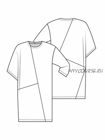 Это платье-туника понравится всем! Модель прямого свободного силуэта собрана из разных по форме деталей. Если все детали платья выполнить из тканей разных цветов, то получится стильный колор-блокинг.