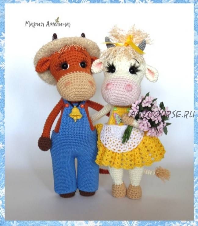 В мастер-класс входит описание вязания бычка и коровки, а также их одежды.