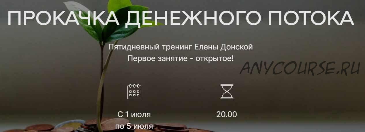 Тренинг «Прокачка Денежного потока» - это мощнейший пятидневный практикум, в ходе которого мы проработаем все опорные точки, ограничивающие приход денег в вашу жизнь