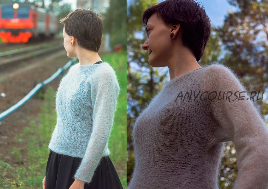 В уроках рассматривается расчет конструкции с отвесным цельнокроеным рукавом очень свободной посадки и степени свободы облегания, выполненной одной деталью. Деталь связана лицевой гладью в поперечном направлении поворотными рядами.