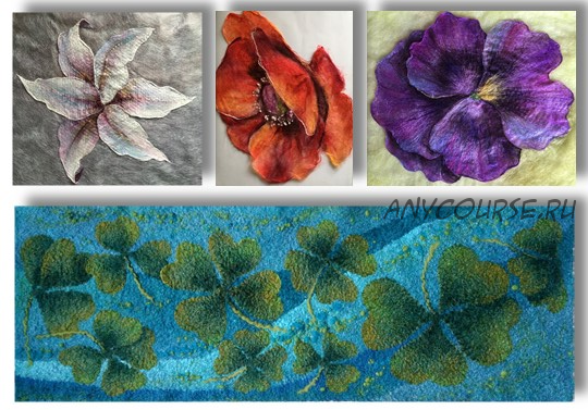 Также полезен для всех увлеченных валянием, желающих создавать живописные и декоративные рисунки любыми волокнами на войлочной поверхности.