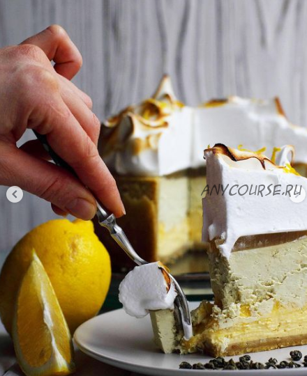 Чизкейк зелёный чай лимон Хрустящая песочная основа из восстановленного теста с добавлением миндальных орехов и зелёного чая, лимонный курд, сырный слой со вкусом зелёного чая, мармелад и обожженная итальянская меренга.