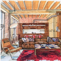 - 1 урок: практика: интерьер в комбинированной перспективе, построение геометрии пространства