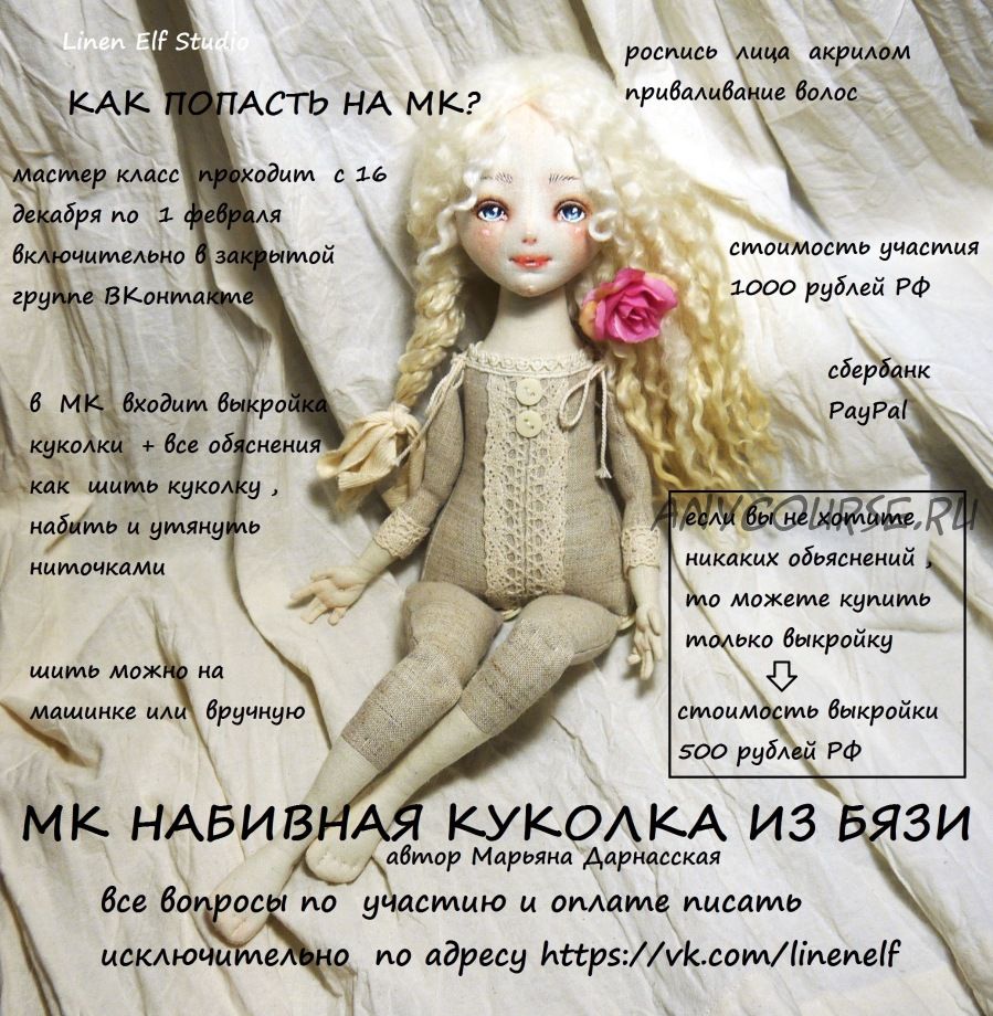 С 16 декабря начинаю совместный пошив по набивной куколке. Класс продлится до 1 февраля включительно. 2 февраля среди сделавших куколку проведем конкурс и победитель получит любой мой мк на выбор.
