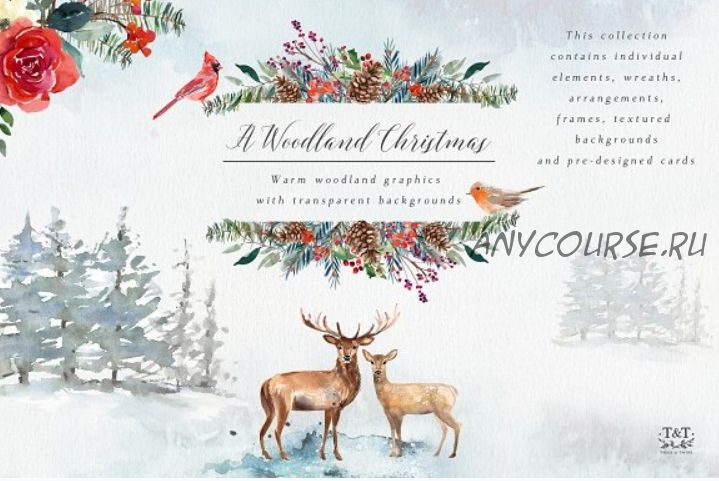 ? Любопытные животные живут среди елей, листвы и ягод, создавая волшебный рождественский фон. Каждый элемент тщательно окрашивается вручную в акварели, а затем используется для создания многих проектов, которые вы можете использовать для своих праздничных проектов. Я также создал некоторые стильные акварельные снежные фоны для создания пейзажей и фона для более минимальных абстрактных конструкций.