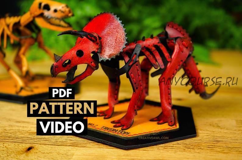[CreativeAwl] Кожаная фигурка динозавра «Triceratops»