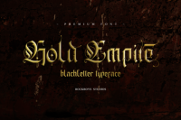 Gold Empire - это очень детализированный и элегантный шрифт с черными буквами. Смело добавляйте его в свои любимые творения и позвольте себе поразиться полученному результату.