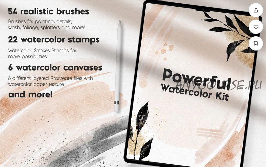 20 акварельных кистей Procreate (включая базовые кисти, кисти с динамикой цвета, капли, брызги, чувствительные к давлению и многое другое).