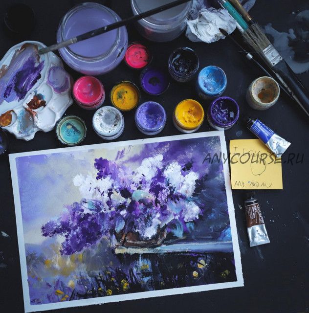 У меня отсняты 4 сюжета. Это мастер-копия Фешина для понимания техники работы гуашью, герань на окошке, стога в поле и эта сирень.