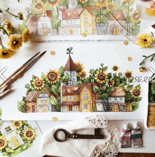 «Цветочная улочка» акварельная иллюстрация (Тоня Ткач)