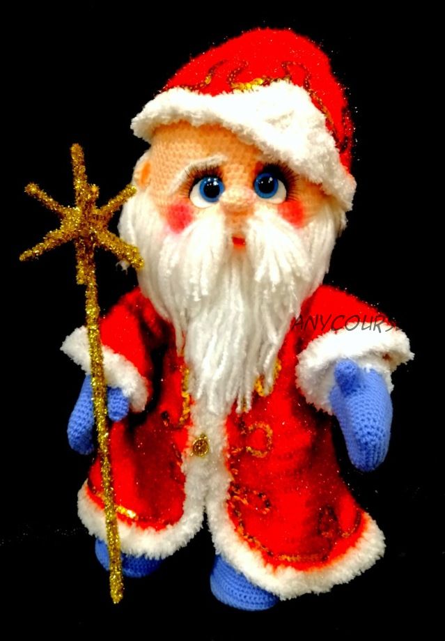Рост игрушки 48 см,( без шапки ) - все части тела подвижные.одежда вся снимается. Руки и ноги ввязаны в тело , пришивается только голова. В мастер класс входит - описание самой игрушки, шапки, шубы, варежек, валенок
