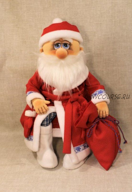 Игрушка выполнена в технике грунтованный текстиль. В мастер-класс входит выкройка в натуральную величину на листе А4. Очень подробно описан процесс создания Деда Мороза, окраска и роспись игрушки, пошив одежды. Мастер-класс иллюстрирован множеством фотографий.