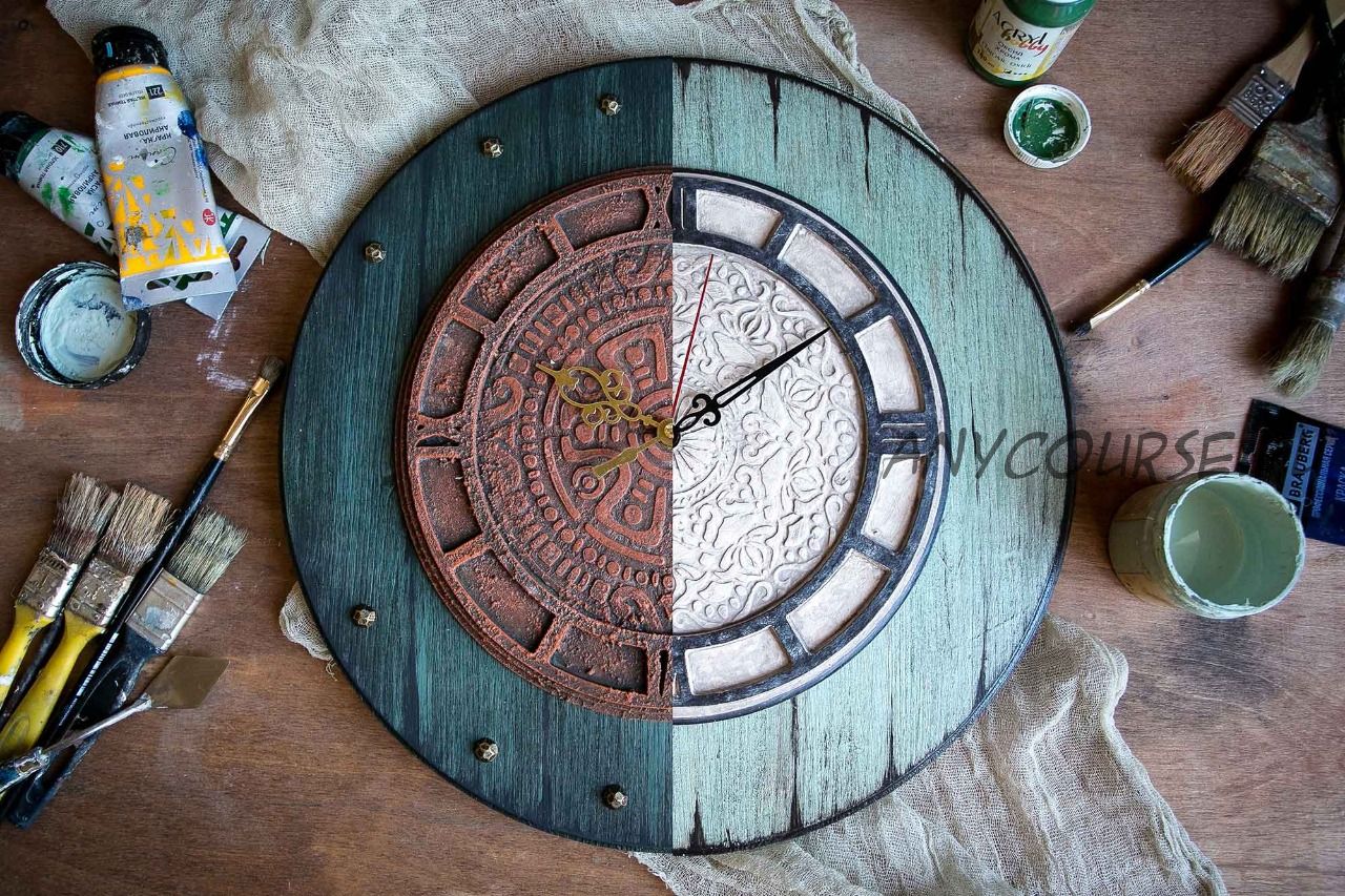 3. Как окрасить циферблат часов (или любую накладку) под ржавый металл.