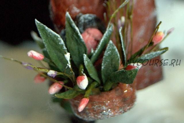 ? Даже в зимнюю стужу, когда зажигаются огни новогодней елки,в душе цветет весна! Невероятно нежно смотрятся заснеженные цветы в корзине хрупкой девушки из ваты…