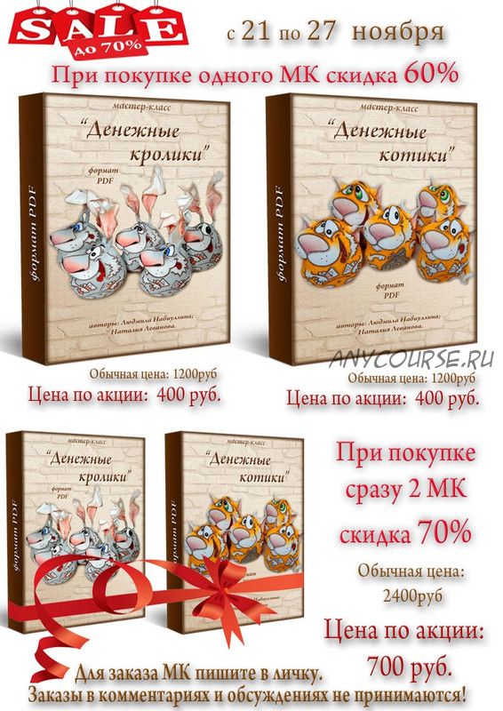 Мастер-классы готовы. Как всегда первую неделю хорошая скидка. Вы можете приобрести либо котов, либо кроликов по отдельности. Цена каждого МК 400 руб. При покупке сразу 2 МК, дополнительная выгода. Цена за два МК 700 руб.