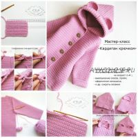 Мастер-класс включает в себя: - Описание и расчет на 3 размера: до 2-х лет; 2-4 года, 4-6 лет. - Поэтапные фото вязания на возраст 2-4 года. - Вывязывание скосов, пройм, оформление капюшона. - Другие тонкости и секреты моего вязания..
