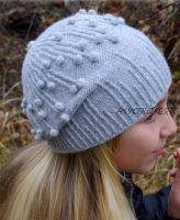 - Вязание от макушки по кругу без швов, неравномерная нескучная схема. Даже резинка у этой шапочки не обычная, а еще милые капельки-шишечки…