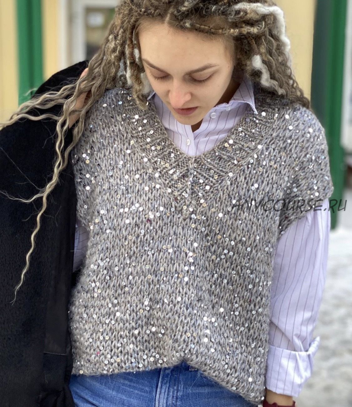 Стильный жилет из воздушной пряжи модным узором станет базой вашего гардероба.