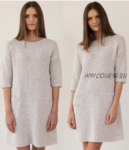 Стильное льняное платье Copley вязаное снизу вверх отдельными деталями, которые затем сшиваются. Для воротничка петли поднять по горловине и вязать по кругу.