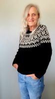 Свитер вяжется плавно по кругу сверху вниз, а тело плавно формирует трапециевидную форму за счет изменения размера игл. Кокетка украшена нежным узором в виде листьев, который обрамляет трехцветный цветочный узор и дополнительные качки, которые создают легкий фактурный интерес. Свитер имеет рукава длиной 3/4 и заниженный нижний край для создания современного образа. Размеры XS (S, M, L, XL, XXL, XXXL)