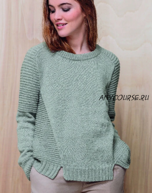 Интересный вязаный свитер Lou выполнен снизу вверх лицевой гладью. Боковые вставки связанные рельефными полосами добавляют эффект асимметрии.
