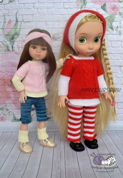 Данный мастер класс содержит два описания вязания спицами туники, штанишек и повязочки на кукол формата Дисней Аниматор и Паола Рейна