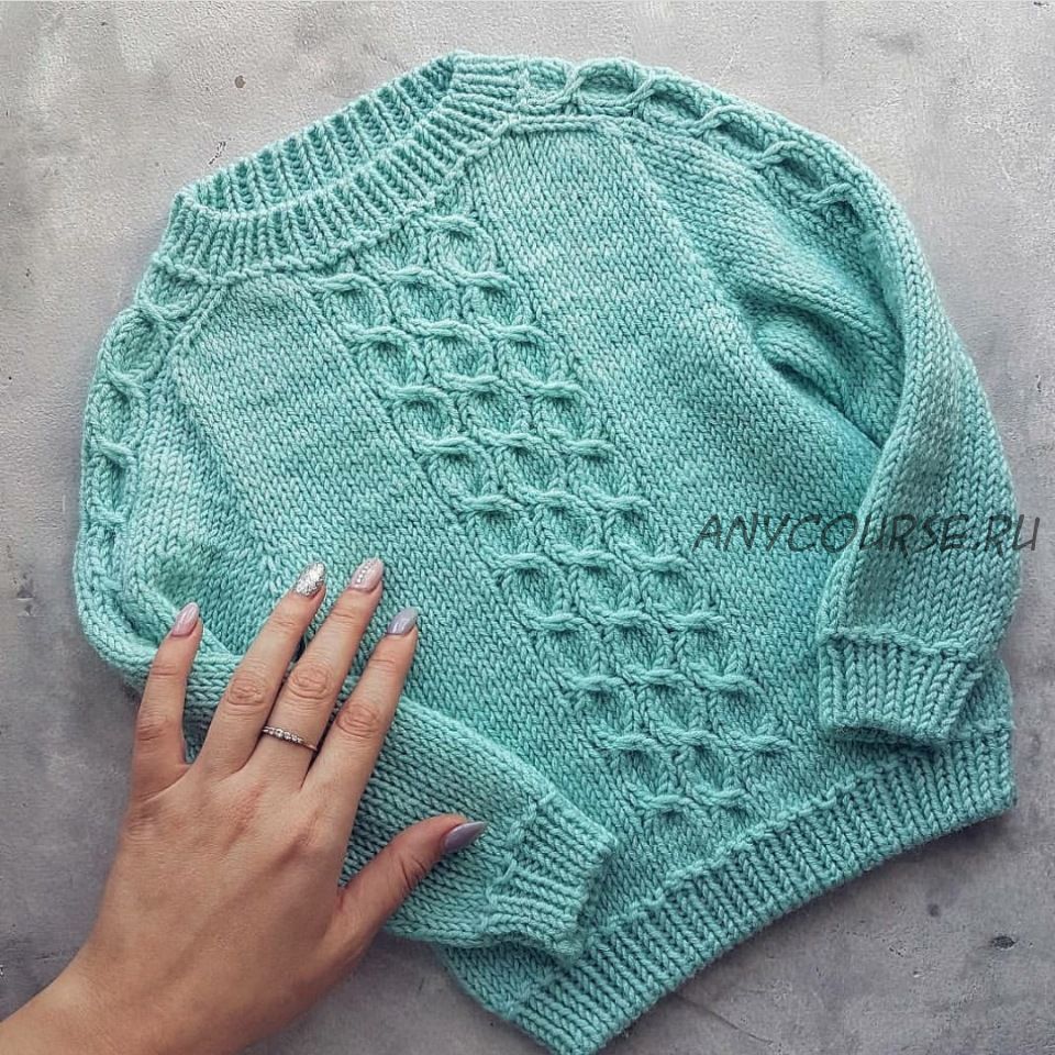 Джемпер вяжется техникой реглан-погон, с вывязыванием округлой горловины и азиатским ростком сверху вниз без швов.